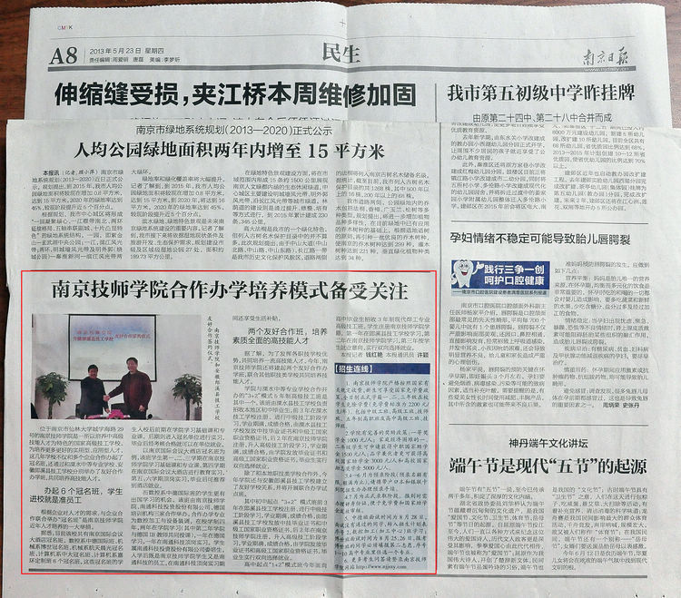 《南京日报》A8版—《开云手机站登入合作办学培养模式备受关注》