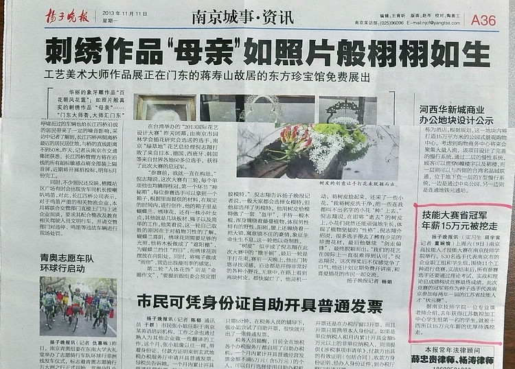 《扬子晚报》A36版—《技能大赛省冠军年薪15万被挖走》