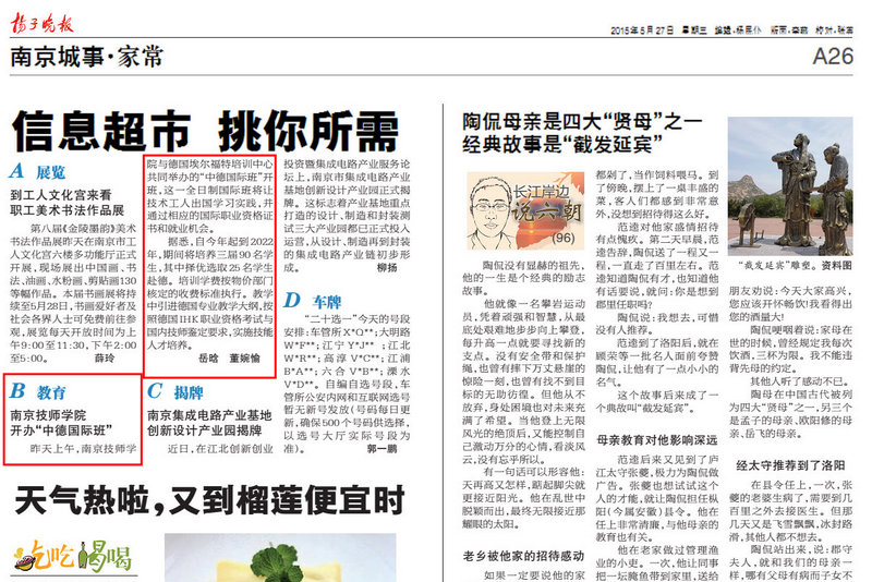 《扬子晚报》A26版—开云手机站登入开办“中德国际班”
