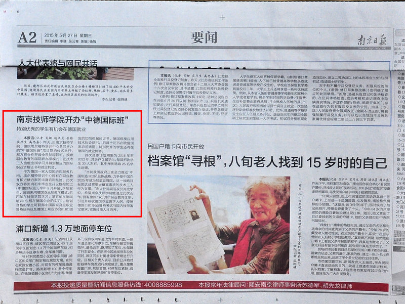 《南京日报》A2—开云手机站登入开办“中德国际班”