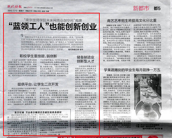 《现代快报》都5—“蓝领工人”也能创新创业
