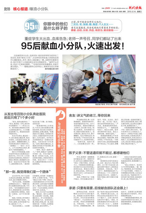 《现代快报》封8—95后献血小分队,火速出发!