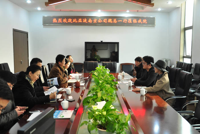2015年12月30日下午,比亚迪汽车工业有限公司南京分公司总经理办公室主任魏波一行5人来我院参观考察,洽谈校企合作事宜,与学院领导及相关部门负责人进行了座谈。