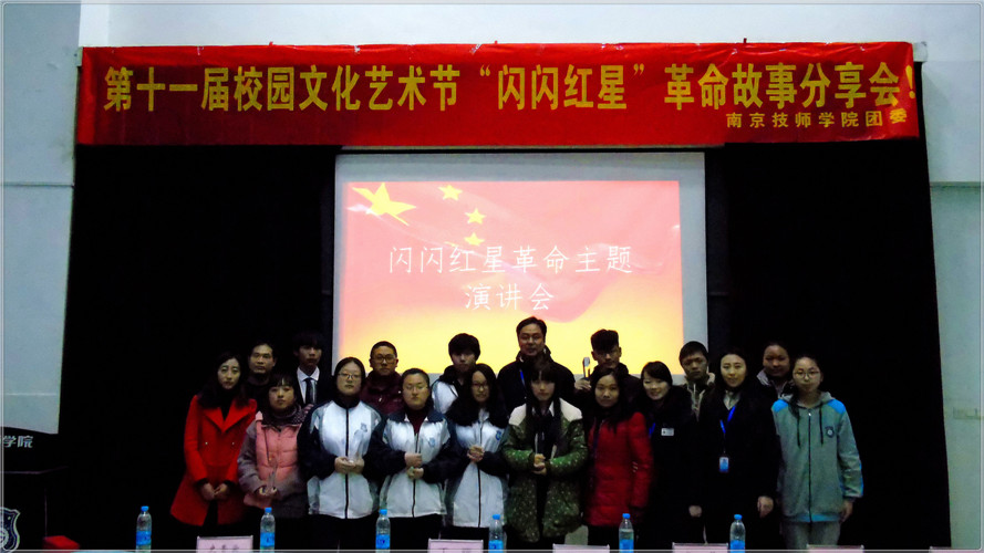 2016年12月13日是第三个南京大屠杀死难者国家公祭日,在这个特殊的日子里,我院团委组织举办第十一届文化艺节“闪闪红星”革命故事分享会,院组织人事处丁辉副处长、学生工作处孙京宁副处长、院团委胡珍霞书记、杨芳副书记,语文教研组组长史香云老师担任比赛评委。