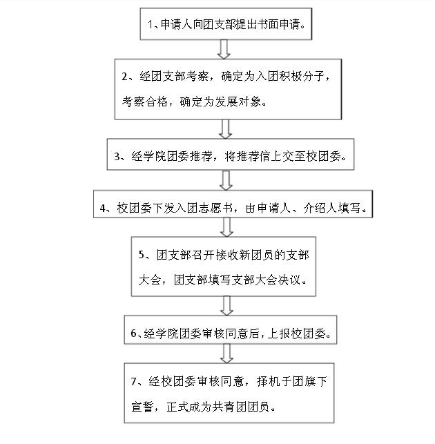 报团委批准后,在团旗下进行宣誓。只有履行以上程序,参加过宣誓后,才能成为一名中国共产主义青年团团员。