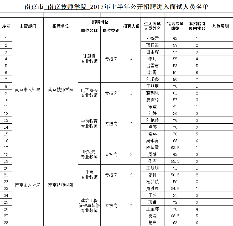 南京市 开云手机站登入 2017年上半年公开招聘进入面试人员名单