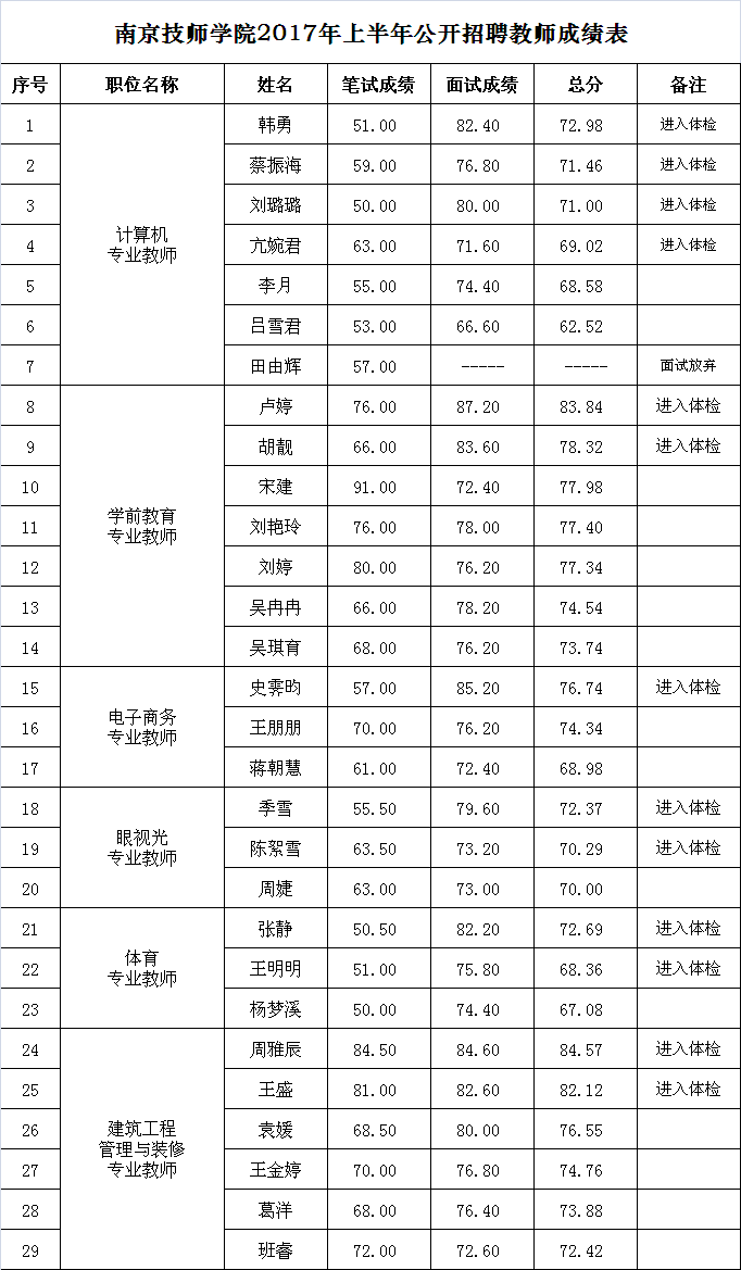 开云手机站登入2017年上半年公开招聘教师成绩表
