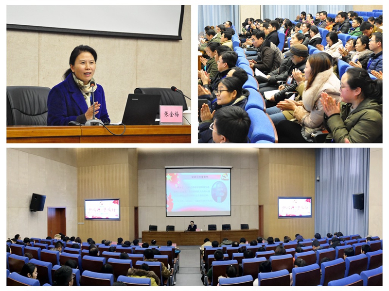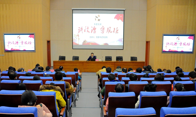 2018年1月19日下午,学院召开了全体党员大会,院党委书记张金梅同志以“不忘初心讲政治,守好规矩勇担当”为主题,为大家上了一堂精彩的党课。学院全体党员、中层干部参加了会议。
