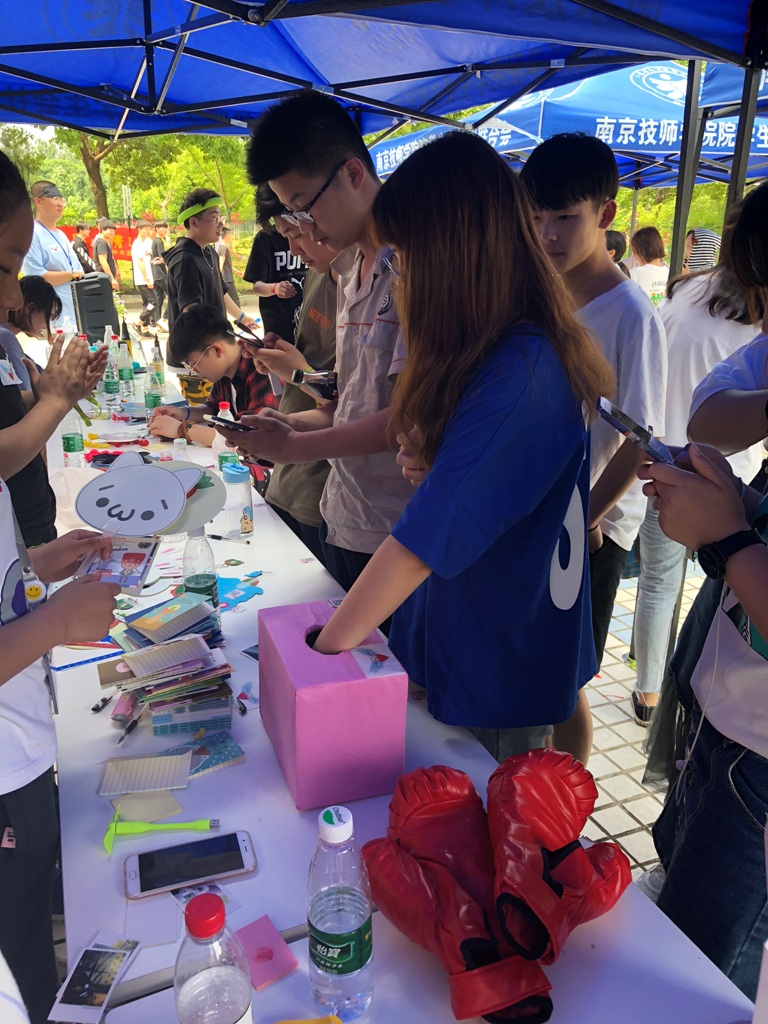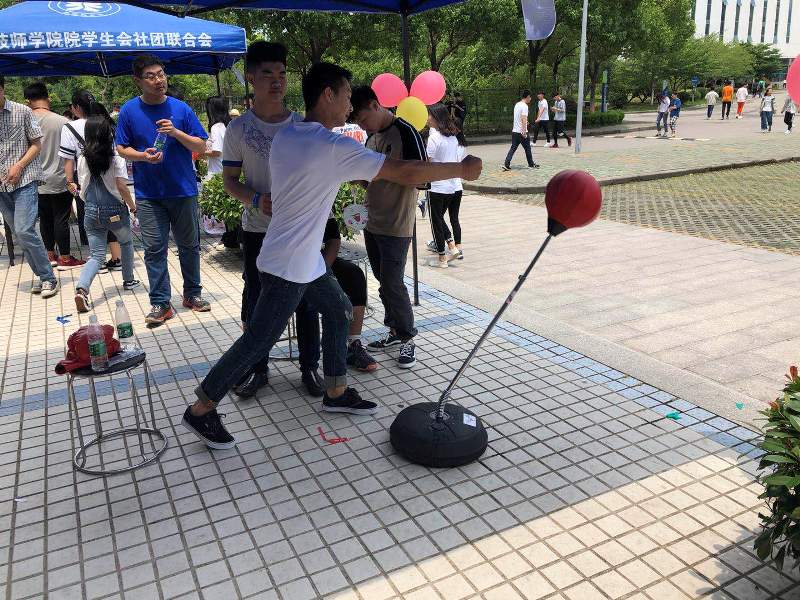 活动现场为大家准备的拳击手套和拳击球受到同学们的一致欢迎。