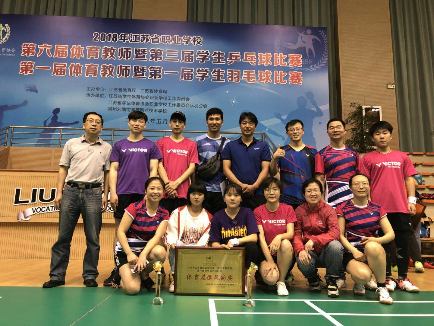 由江苏省教育厅、江苏省体育局主办的“2018年江苏省职业学校第一届体育教师暨第一届学生羽毛球比赛”于5月18—20日在常州刘国钧高等职业技术学校举行。此次比赛分教师团体组和学生团体组,参赛队伍均来自全省羽毛球实力较强的职业学校及技工院校。