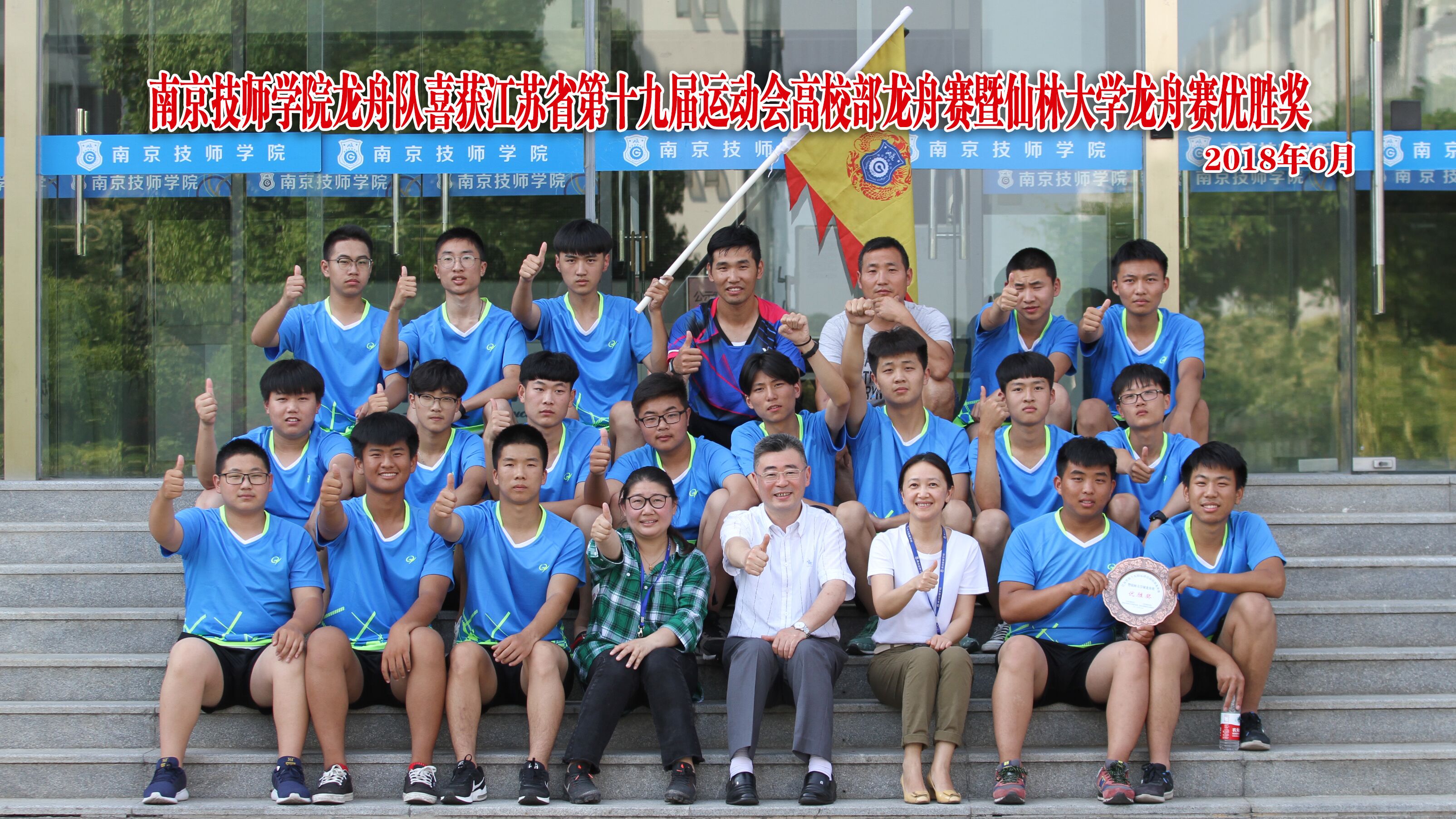 6月9日,我院龙舟队受邀参加了由江苏省教育厅、江苏省体育局、南京市仙林大学城管委会、南京市栖霞区人民政府联合举办的江苏省第十九届运动会高校部龙舟赛暨仙林大学龙舟赛,最终获得“优胜奖”。基础课部体育教研室吴伟老师、杨小莉老师获得“优秀教练员”称号。