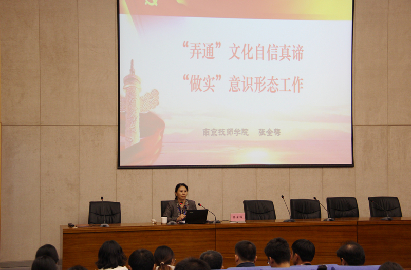 为进一步加强学院意识形态工作,引导全体党员及广大教职工坚定文化自信,10月18日下午,院党委书记张金梅同志以“‘弄通’文化自信真谛,‘做实’意识形态工作”为主题讲授专题党课。学院全体党员、发展对象、入党积极分子、中层干部、学管员参加讲座。