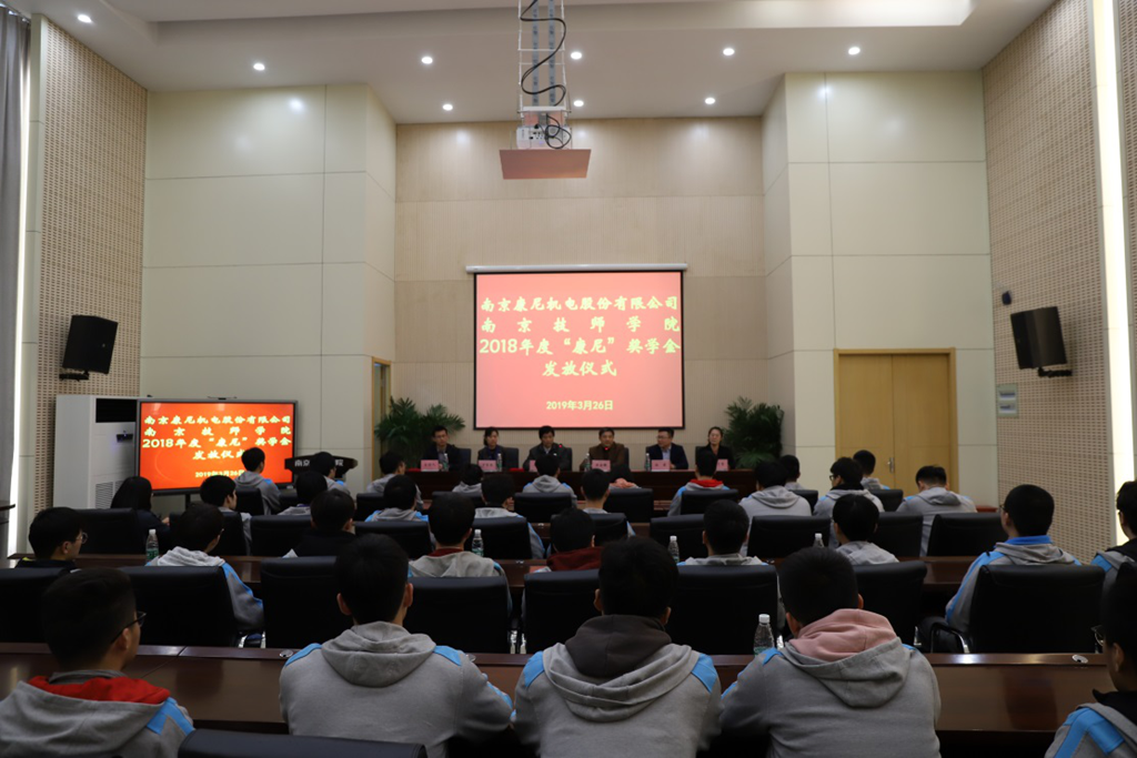 阳春三月,风和日丽,万物复苏,充满了生机和希望。2019年3月26日下午,2018年度开云手机站登入“康尼”奖学金发放仪式在学院如期举行。开云手机站登入王杭贵副院长、南京康尼机电股份有限公司张金雄总监以及学院招生就业处、电气工程系相关领导和老师参加仪式并为获奖同学颁奖。