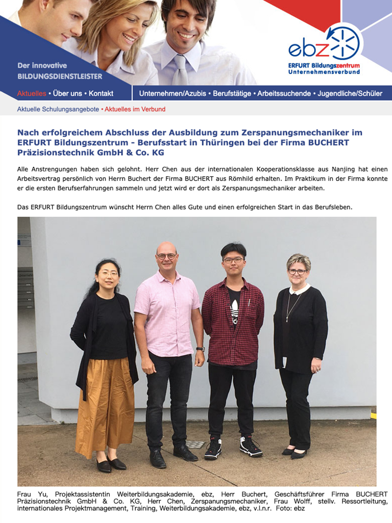 图5:德国埃尔福特培训中心官网有关我校陈世强同学的专题报道