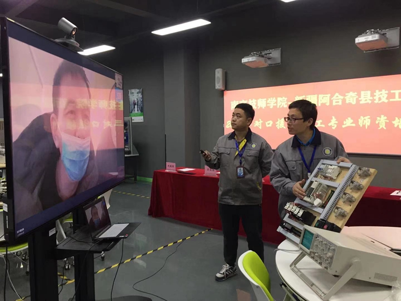 会后,我院电工专业教师与阿合奇县技工学校专业教师通过在线视频方式,深入探讨了维修电工中级工、高级工职业技能等级认定的考评标准,技能操作考核模块要求和操作要领。下一步,两校将按授课计划开展系统化专项培训,采用线上线下相结合的方式,完成电工专业师资培训目标任务。