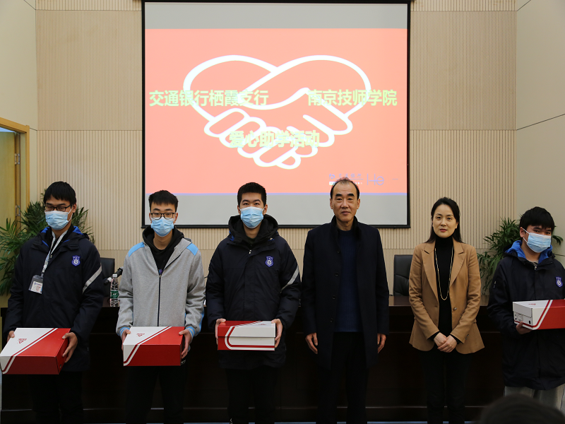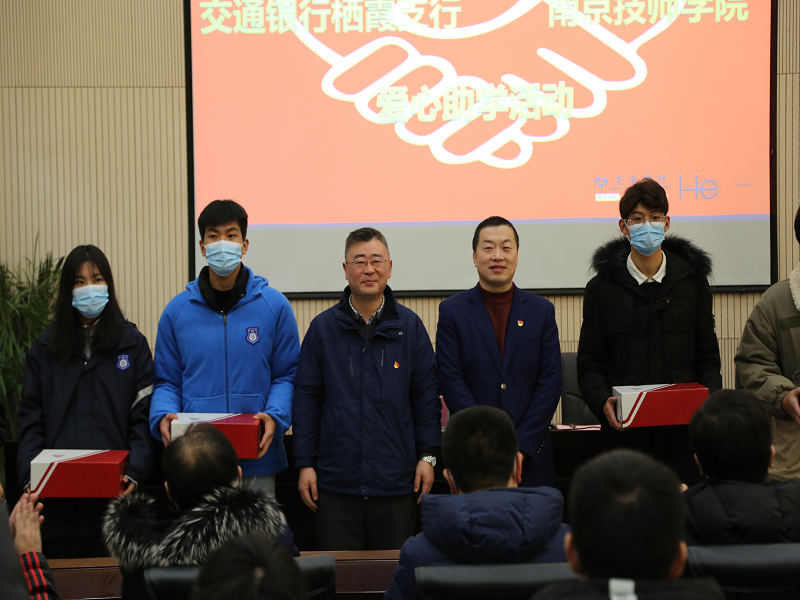 2020年12月24日上午,交通银行栖霞支行吕莹副行长、王道鸿副行长一行五人莅临我院,参加爱心助学活动。开云手机站登入侯放院长、金卫卫副院长和财务处、学工处、各系教工代表,以及获得爱心帮助的20名学生参加了本次助学活动。