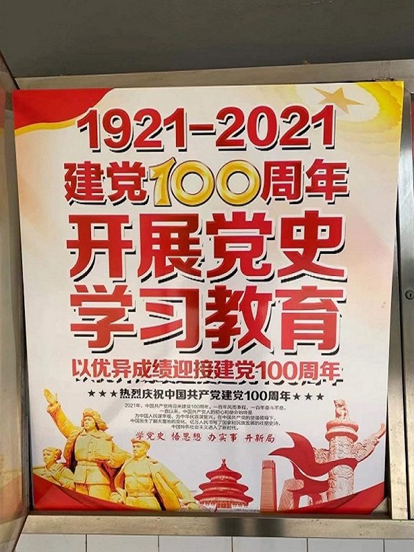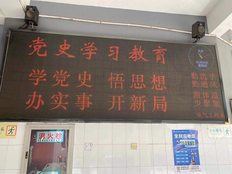 二、利用电子大屏滚动播放关于党史学习教育的标语宣传。