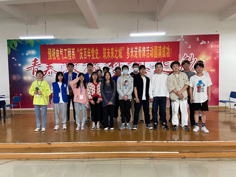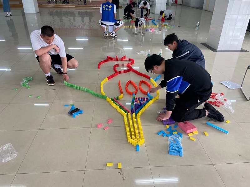 为庆祝建党一百周年,培养当代学生的团队协作能力,考验学生体力、耐力和意志力,提高学生的动手能力,电气工程系在李鑫老师带领下于4月29日举办了以“庆百年党史,筑未来之城”为主题的多米诺骨牌比赛,用此来表达对建党100周年的喜悦。