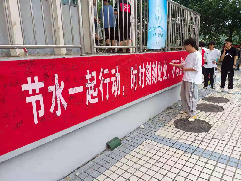 活动初期,我院号召全体师生提高节水意识,在宿舍、食堂、教学楼等众多地方也都是有张贴关于节水的海报和标语。在活动当日,众多学生在 “节水万人签名”活动的横幅上签字,留下了大家圣神的一笔,一个个名字是一个个庄严的承诺——节水一起行动,时时刻刻处处,不忘点点滴滴。我们的老师和学生干部更是带头踊跃的参加此次活动。