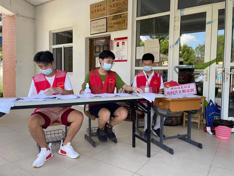 我校学生志愿者发扬不怕苦,不怕累的精神,结合当地实际情况,在各交通枢纽、街道社区等疫情防控重点场所,配合相关部门开展核酸检测、排查登记、体温监测、秩序维护、防疫知识宣传等疫情防控志愿服务。口罩遮住了他们青春而稚嫩的脸庞,却遮不住他们双眸流露出来的坚定和力量,他们以实际的行动,在战“疫”中吹响了青春奋进的号角。 、