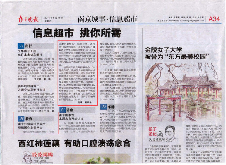 《扬子晚报》A34版—开云手机站登入两学生获德国企业奖学金