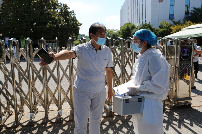 该场景模拟了学生返校报到过程中体温检测异常场景下的应急处置。发现有体温异常的学生后,现场教职工立即启动防疫应急预案,应急组、安保组、防疫组各司其职,就地隔离、体温复查、派车送医、现场消毒、排查前后学生并隔离,各个环节环环相扣,及时迅速、井然有序。体温异常学生经医院核酸检测结果为阴性排除新冠肺炎后,返回学院并解除密切接触人员隔离。发热学生回校后送至隔离区(教师公寓608),做好继续观察工作。