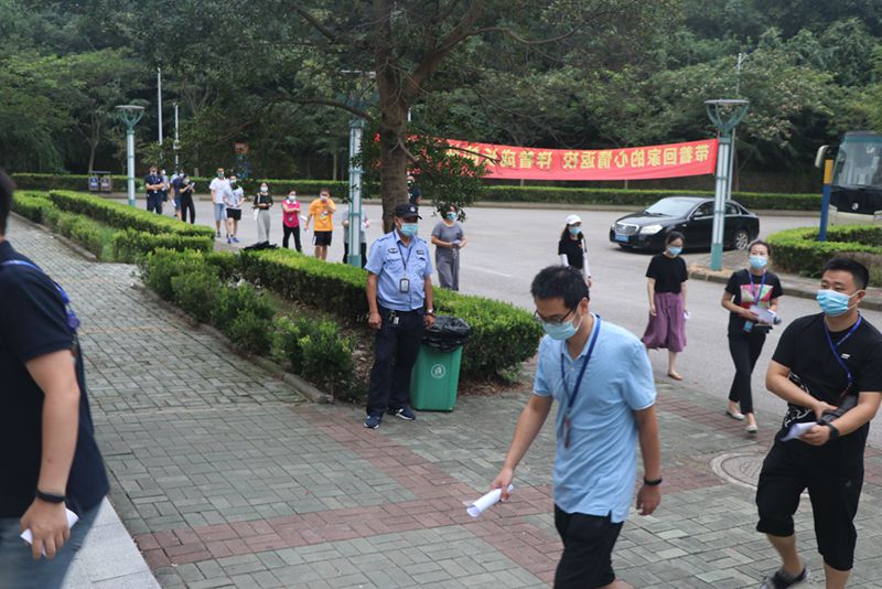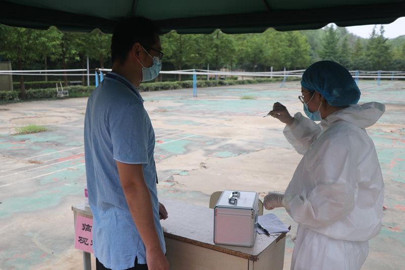 井然有序中也出现了突发事件。一位学生在宿舍突感不适,有发热、乏力、咳嗽症状,自测体温超过37.3℃,立即向宿管员报告。宿管员接到报告后,通知该宿舍人员不得外出,并指引学生转移到宿舍门口的临时观察点,并立即电话向值班人员报告。随后,值班人员通知值班校医快速赶到宿舍门口临时观察点对该学生进行相关处置,经过测量体温、询问有关情况后,学生的体温仍然异常,由学院派车送医院处理。同时,防疫组、安保组到现场维持秩序,划定警戒区域,宿管员着隔离防护服对楼栋和宿舍进行了消毒。发热的学生经医院核酸检测为阴性排除新冠肺炎后,送回学院位于教师公寓的集中隔离区,继续做好观察工作,整个体温异常学生的处置工作显得井然有序。