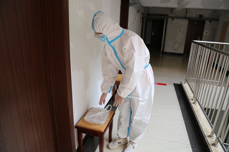 值班人员为发热人员送餐