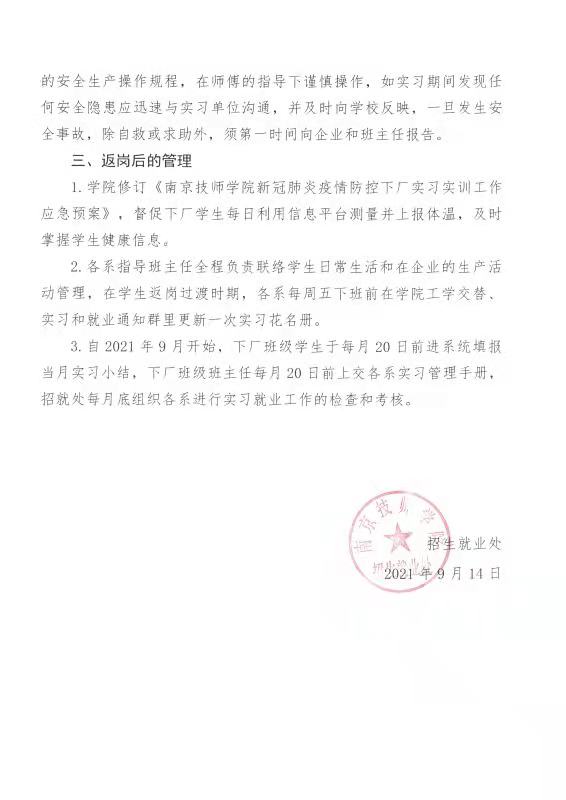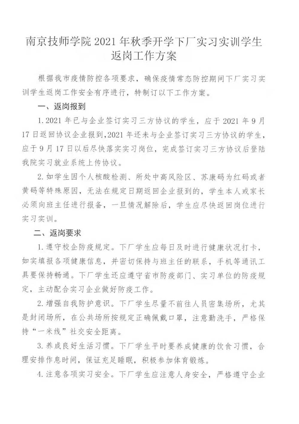 开云手机站登入2021年秋季开学下厂实习实训学生返岗工作方案