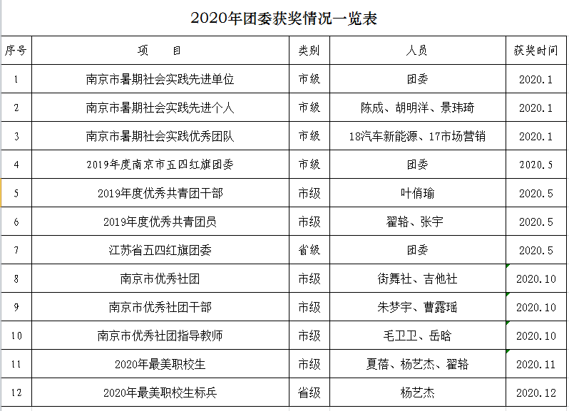 2020年团委荣誉一览表