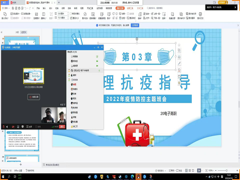 疫情当前,责任在肩。作为学生,在这关键时期,在做好个人防护,不信谣不传谣的同时,积极响应国家号召,配合学校防疫工作。为了舒缓疫情下同学们的负面情绪,2022年4月13日至4月20日,我院各班级心理委员召开了线上“疫情防控,有你有我”心理健康调适主题班会活动。