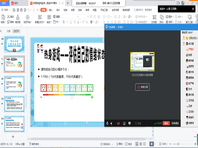 加强心理委员队伍建设,充分发挥班级心理委员的朋辈心理辅导作用,对于学生心理健康管理工作意义非凡。此次,心理委员们通过开展疫情心理主题班会,促进了他们成长。
