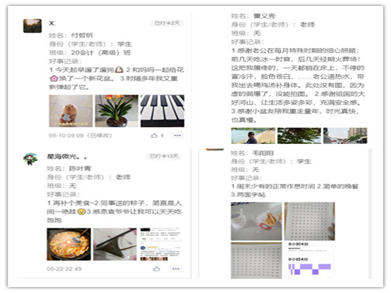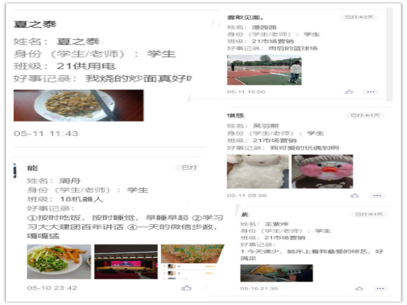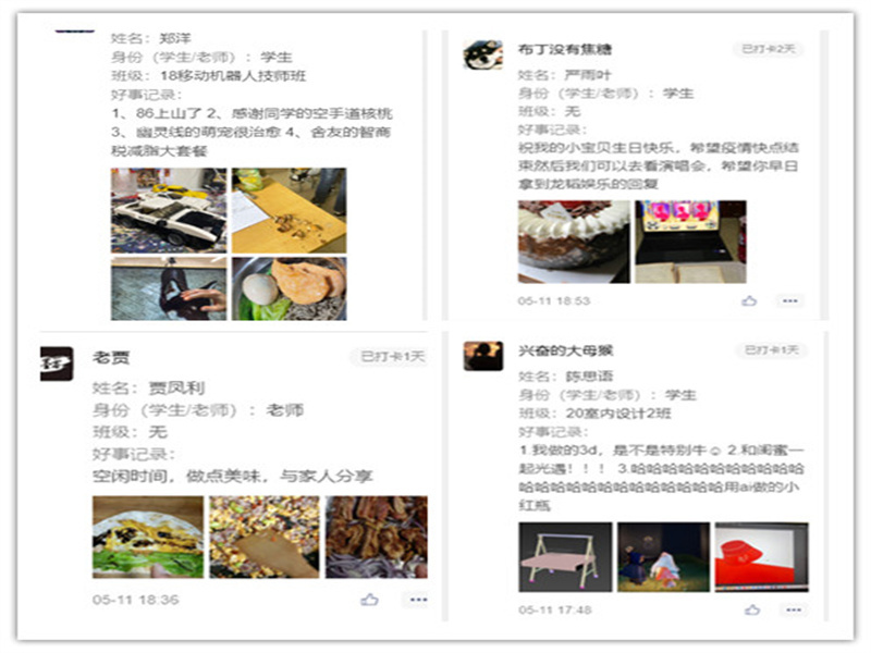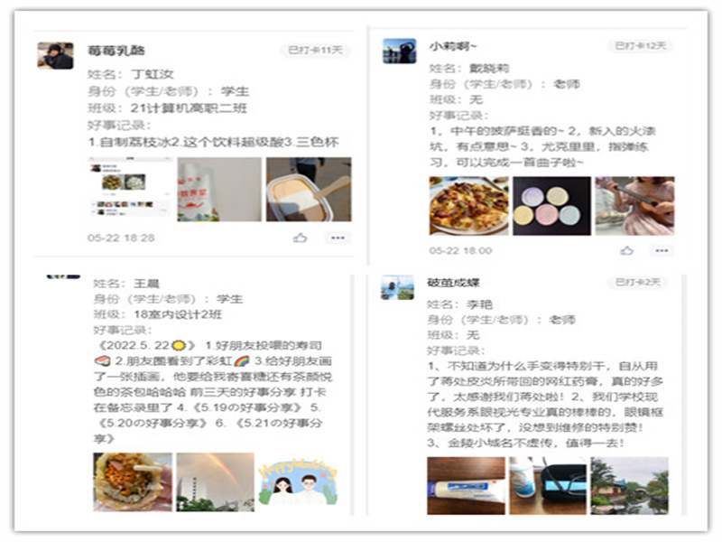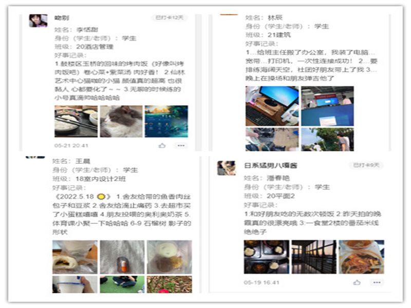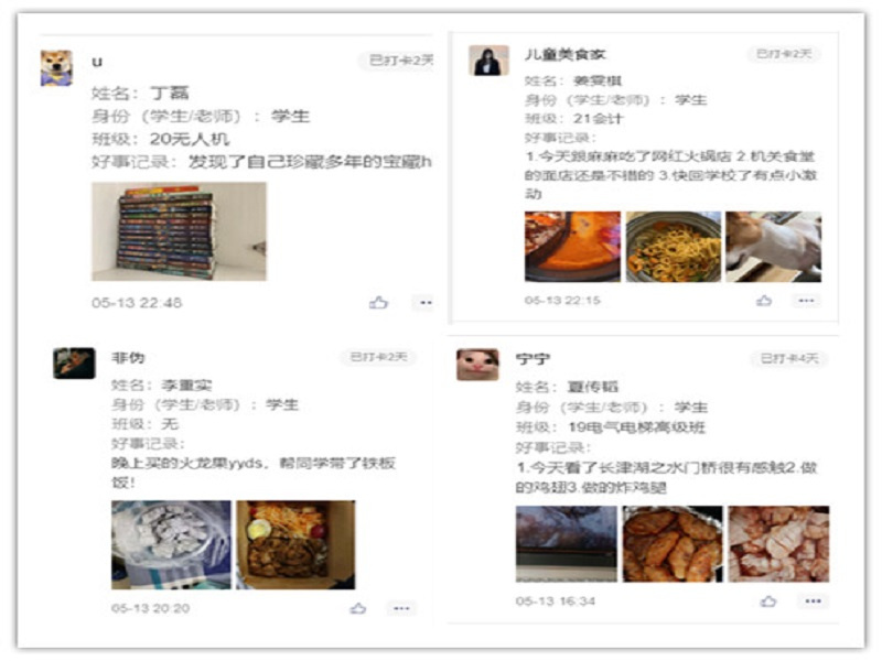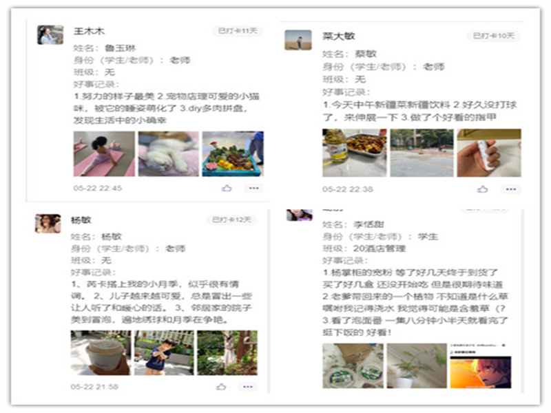 “每日三件好事活动”以在微信小程序打卡的方式,为全院师生记录着生活的点滴,分享生活的乐趣的平台。全院师生积极参与,积极分享。