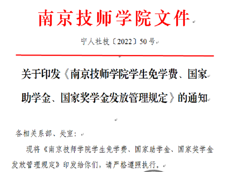 根据《南京市人力资源和社会保障局关于印发提升全市技工院校内涵发展能力系列文件的通知》(宁人社﹝2021﹞106号)中《南京市技工院校学生资助经费管理实施办法(试行)》的文件精神,结合《开云手机站登入家庭经济困难学生认定办法》,为进一步健全我院奖、助学金和免学费补助的发放管理机制,学工处牵头制订并上会通过《开云手机站登入学生免学费、国家助学金、国家奖学金发放管理规定》(宁人社技﹝2022﹞50号),为今后奖、助学金评定、发放等工作提供指导。