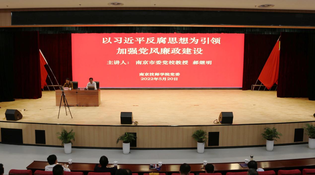 为深入贯彻落实全省人社系统2022年全面从严治党暨党风廉政建设工作会议精神,按照市人社局“廉洁从政警示教育月”活动安排, 5月20日下午,学院邀请南京市委党校郝继明教授开展了《以习近平反腐思想为引领,加强党风廉政建设》专题讲座,144名党员干部分别通过线上、线下两种形式聆听了此次授课。本次讲座由院党委书记张金梅同志主持。