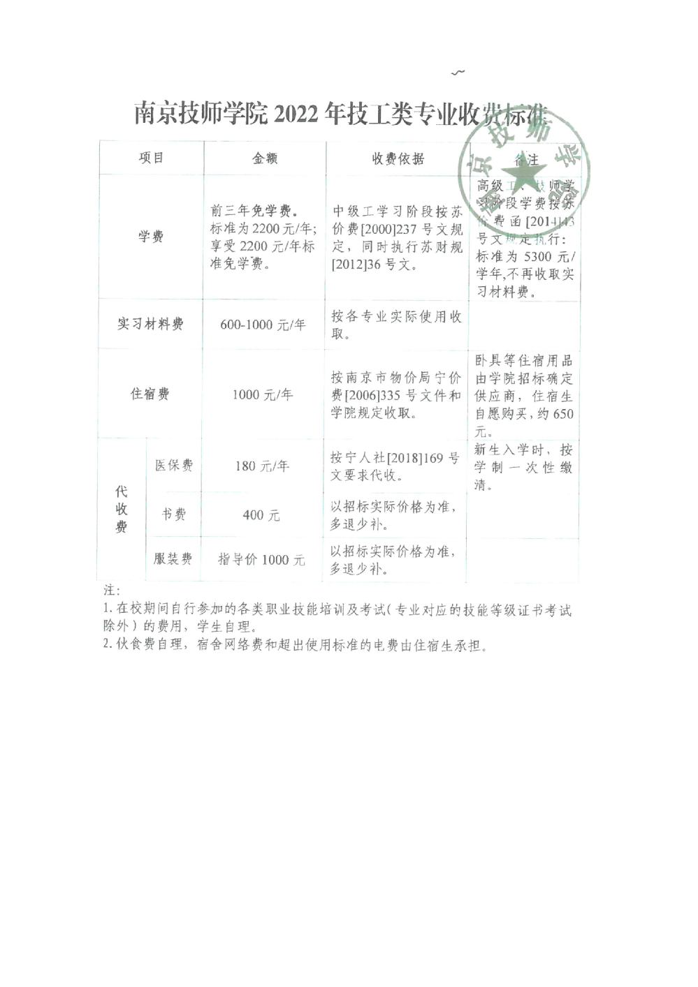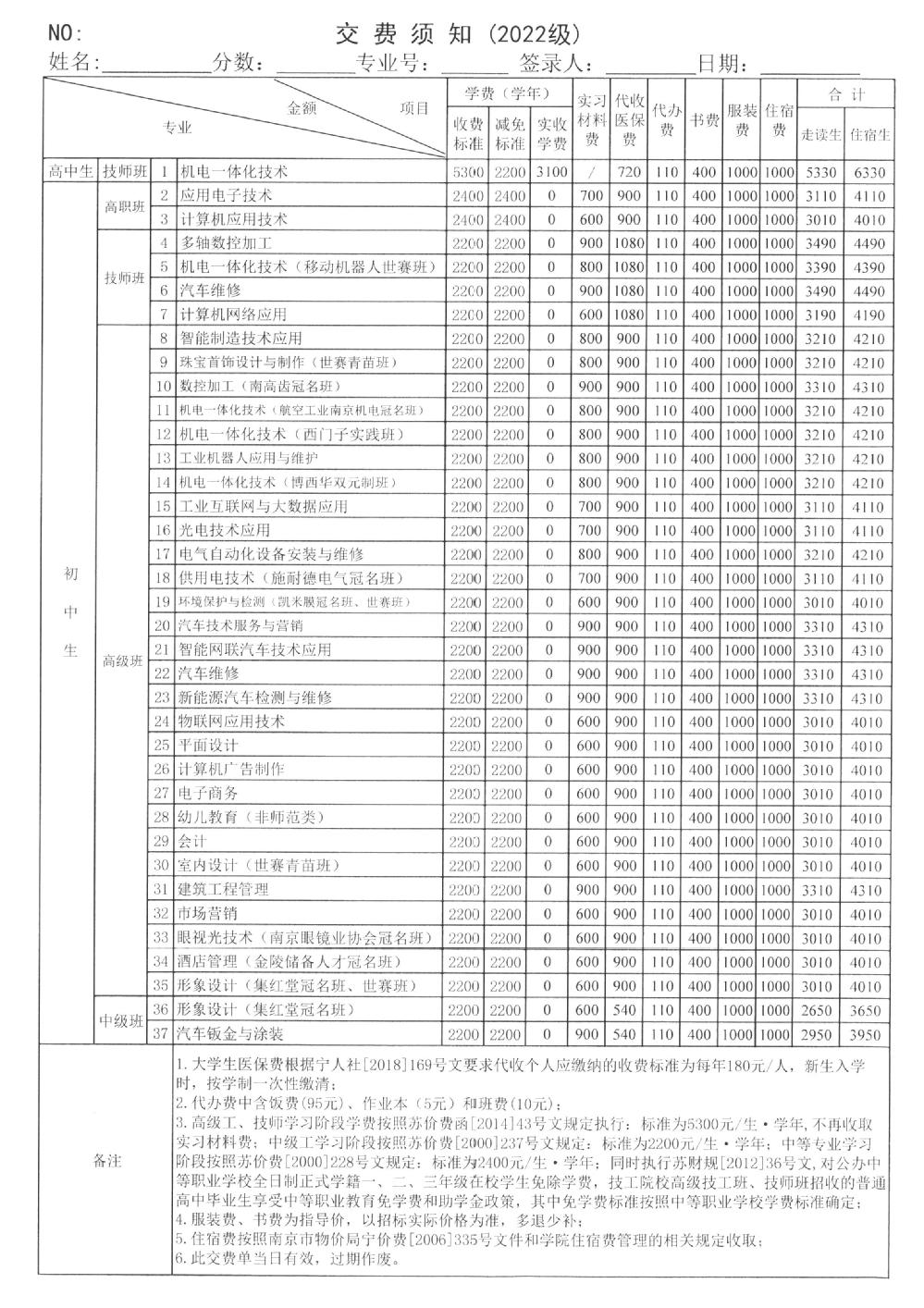2022年新生交费须知及收费公示