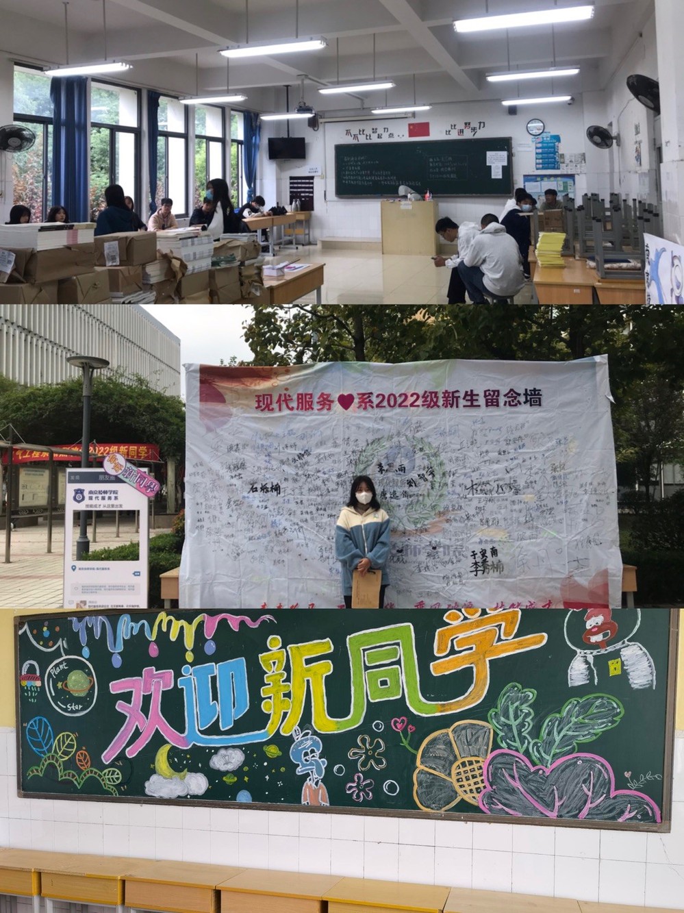 下午,各班级新生召开班会,进行入学教育,班主任带领新生进行全员核酸检测,并在晚上1900开始在教室内进行晚自习。