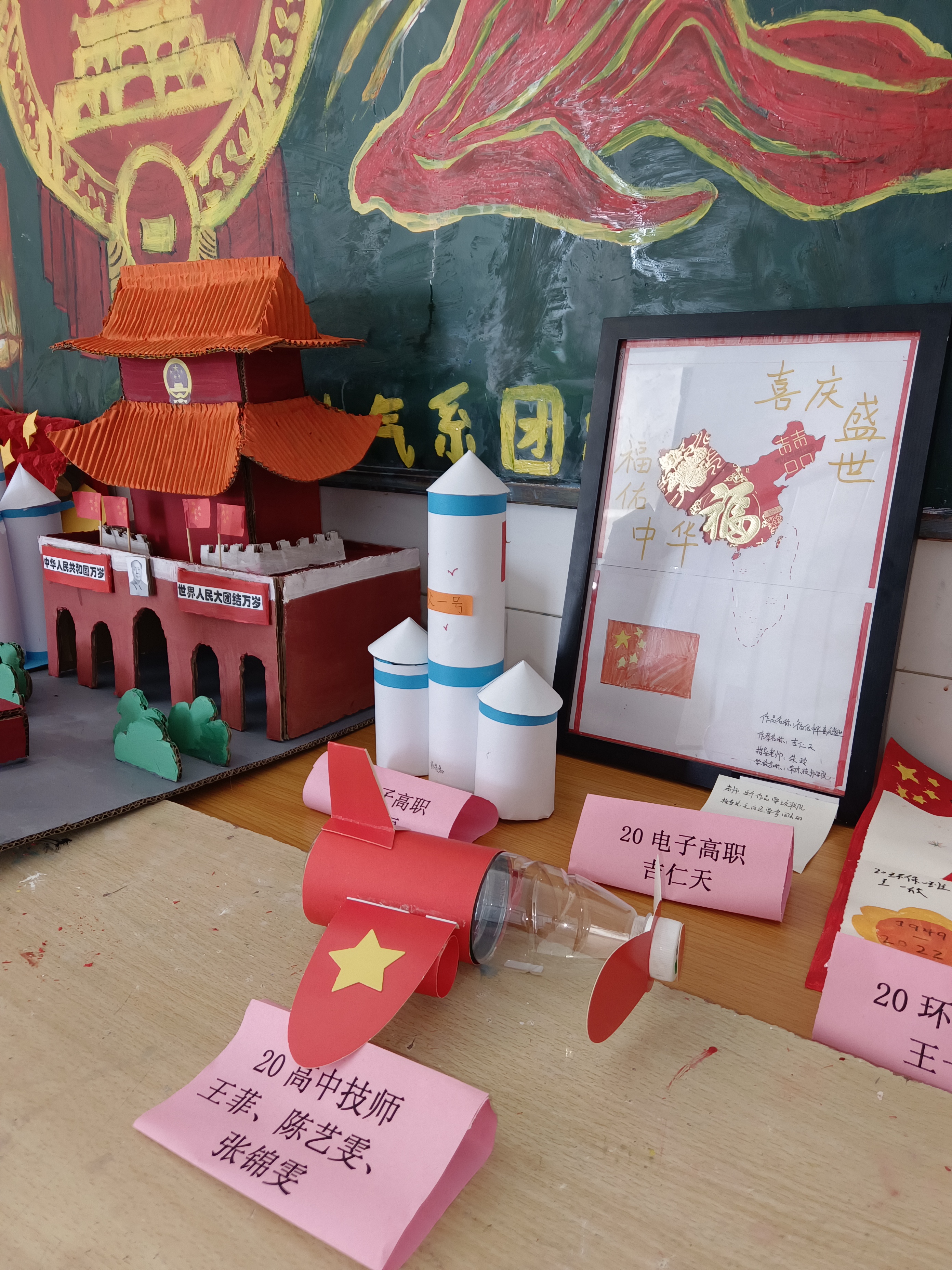 同学们用饮料瓶、快递盒、鸡蛋盒以及卡纸等环保材料,充分发挥创意,用巧手制作出了精美的国旗、中国地图、天安门模型、长征系列火箭等作品,描绘了祖国繁荣昌盛的图景,饱含了对党和国家的热爱与赞颂,表达了对中华民族伟大复兴中国梦的美好期盼。