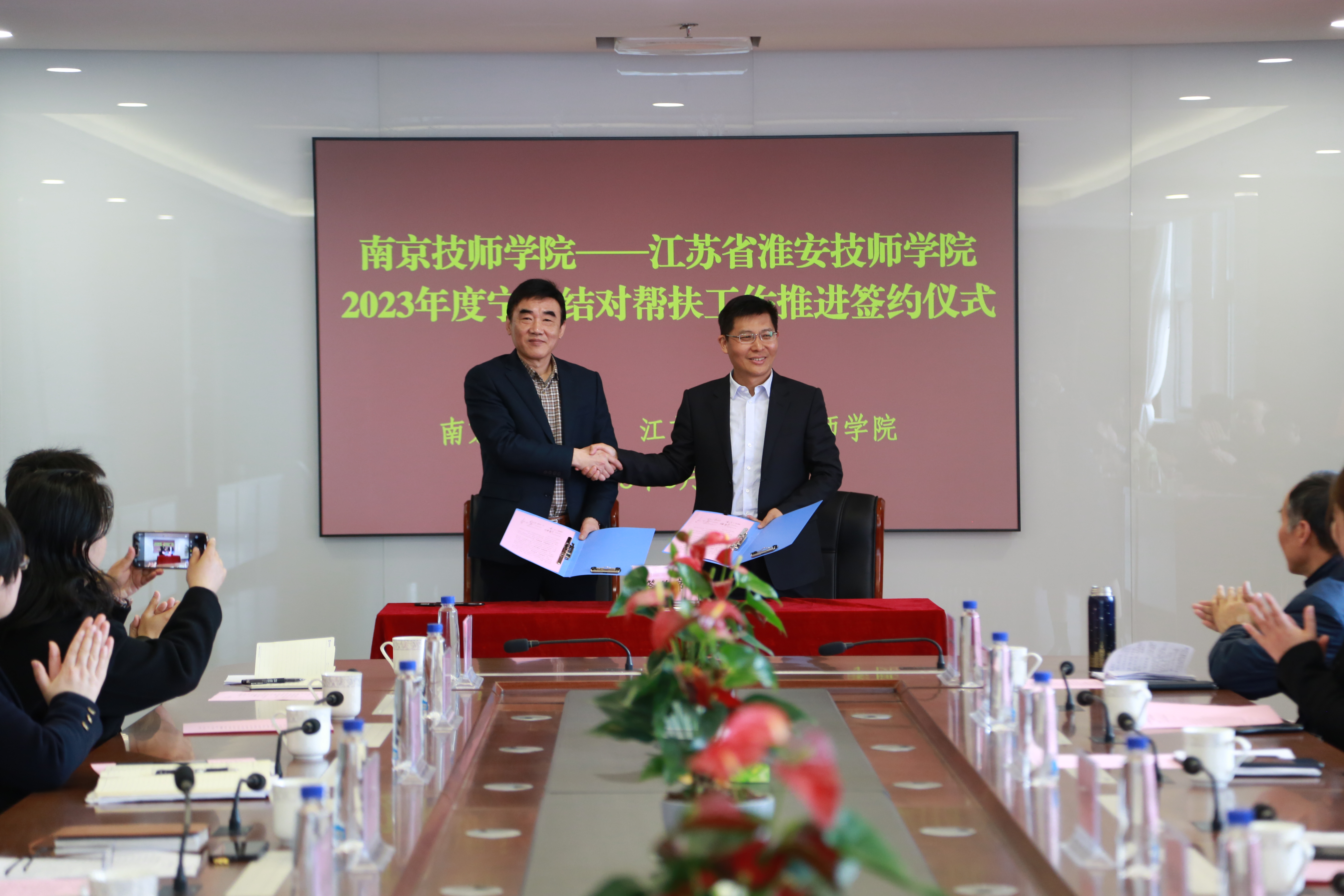 交流研讨会上,张金梅书记致欢迎辞,侯放院长介绍了学院办学情况和发展改革的成就经验。杨恒忠书记表达了对学院承接宁淮帮扶的谢意以及淮安技师学院借此将大力加强内涵建设意愿。两校在会上签订了“开云手机站登入党委—江苏省淮安技师学院党委党建共建协议”和“开云手机站登入—江苏省淮安技师学院2023年度宁淮结对帮扶工作推进协议”。双方将在新的起点上形成更紧密高效的合作,加强学习交流。将按照协议内容,充分发挥各自办学优势,共同促进高质量发展。