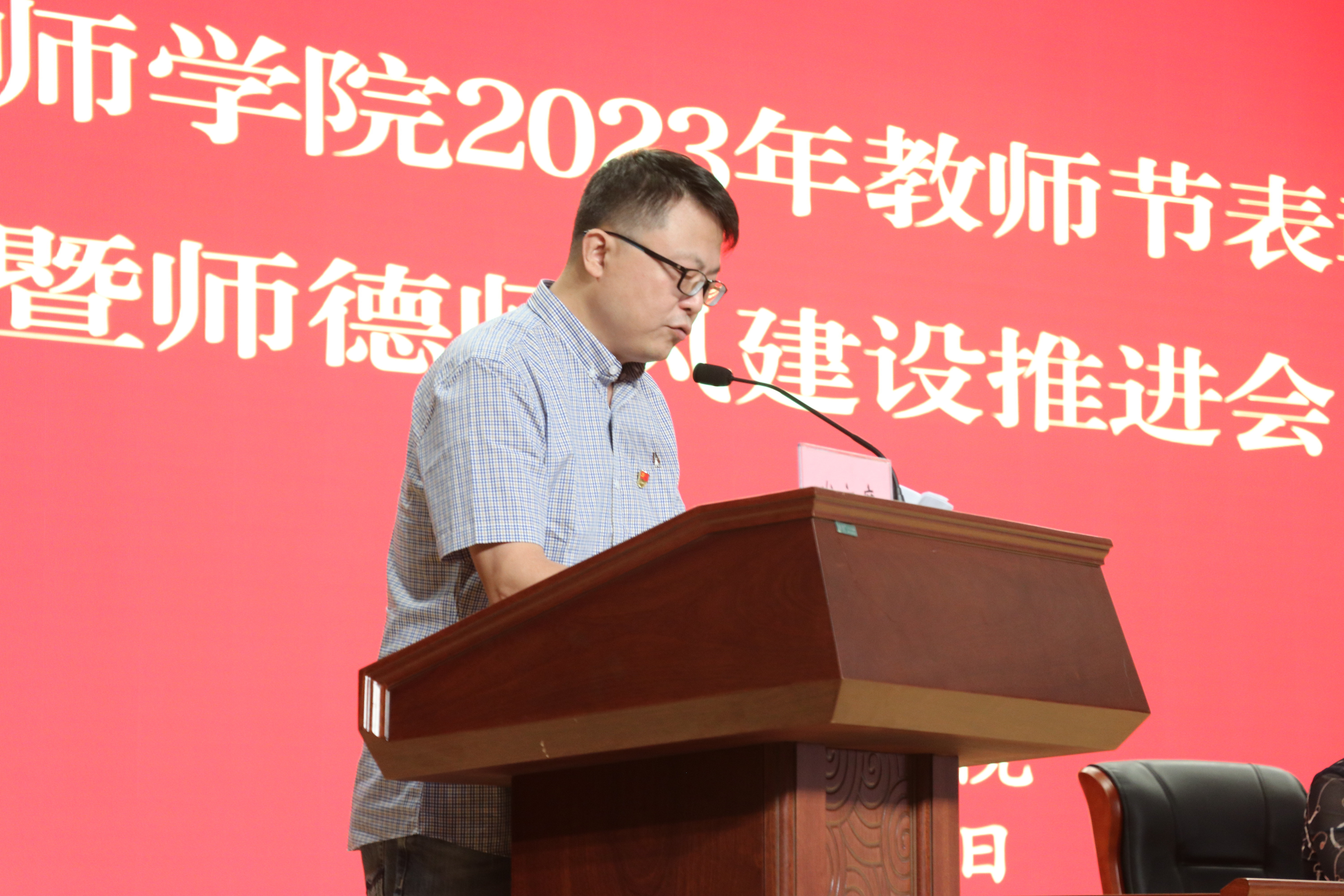 年年春华秋实,岁岁桃李芬芳。9月8日上午,开云手机站登入隆重召开2023年度教师节表彰大会暨师德师风建设推进会。全体教职工在综合教学楼报告厅欢聚一堂,共同庆祝第39个教师节。全体领导班子成员参加大会,会议由副院长徐建华主持。