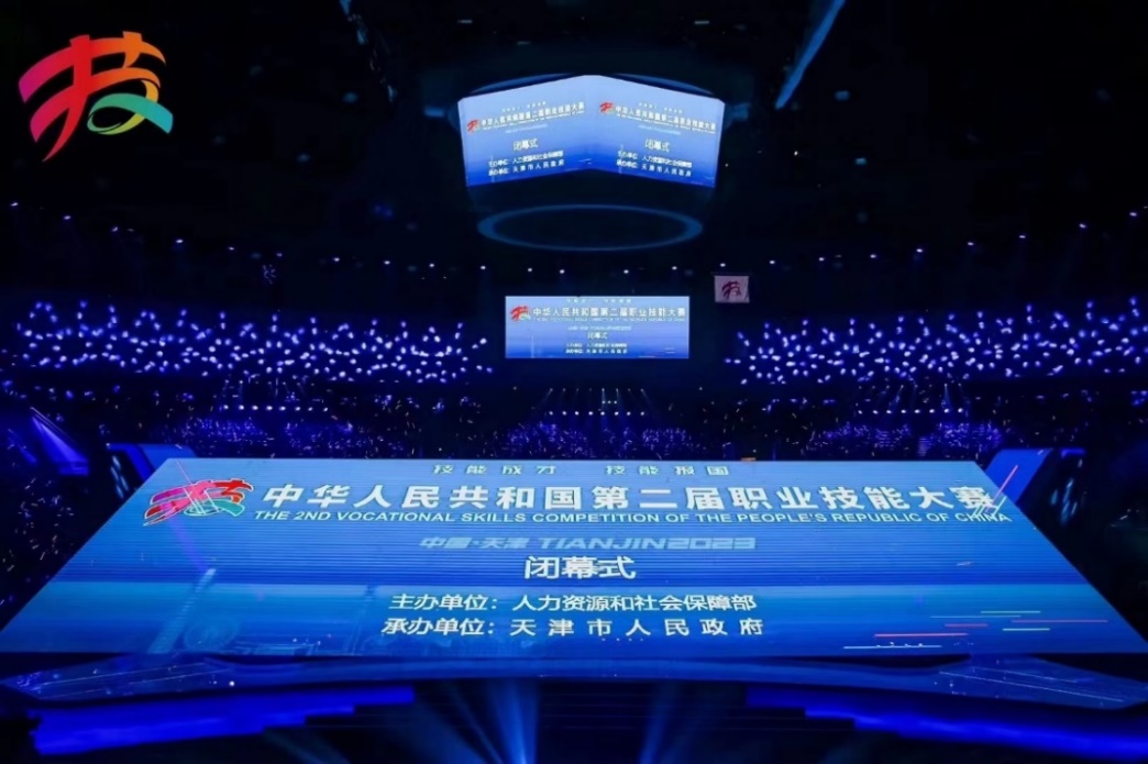 第二届全国技能大赛以“技能成才、技能报国”为主题,由人力资源和社会保障部主办、天津市人民政府承办,是新中国成立以来,规格最高、项目最多、水平最高、影响最广的综合性国家技能赛事。在本次比赛中,杨艺杰斩获世赛水处理项目金牌,陆杨佳斩获国赛精选珠宝加工项目铜牌,倪骏程、赵文军斩获国赛精选工业互联网项目铜牌,另有世赛美容项目、世赛移动机器人项目、世赛焊接项目、世赛珠宝加工项目和世赛商品展示项目荣获优胜奖。