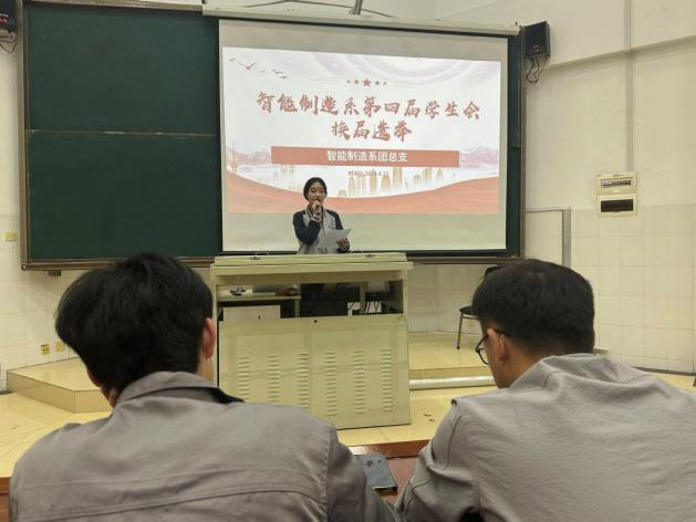 2024年4月22日下午,智能制造系学生会在四栋阶梯教室隆重召开第四届学生会换届选举大会。出席本次大会担任评委有:智能制造系林润海主任,智能制造系团总支书记周树亮老师,第三届学生会主席鹿江南同学,第三届学生会副主席陈俊元同学。