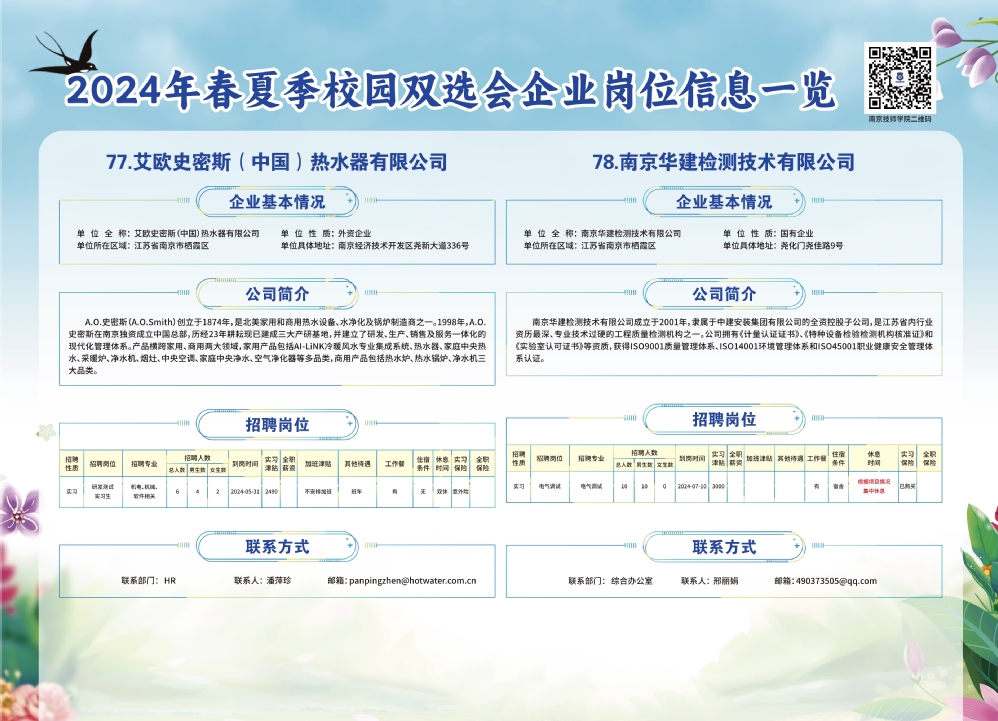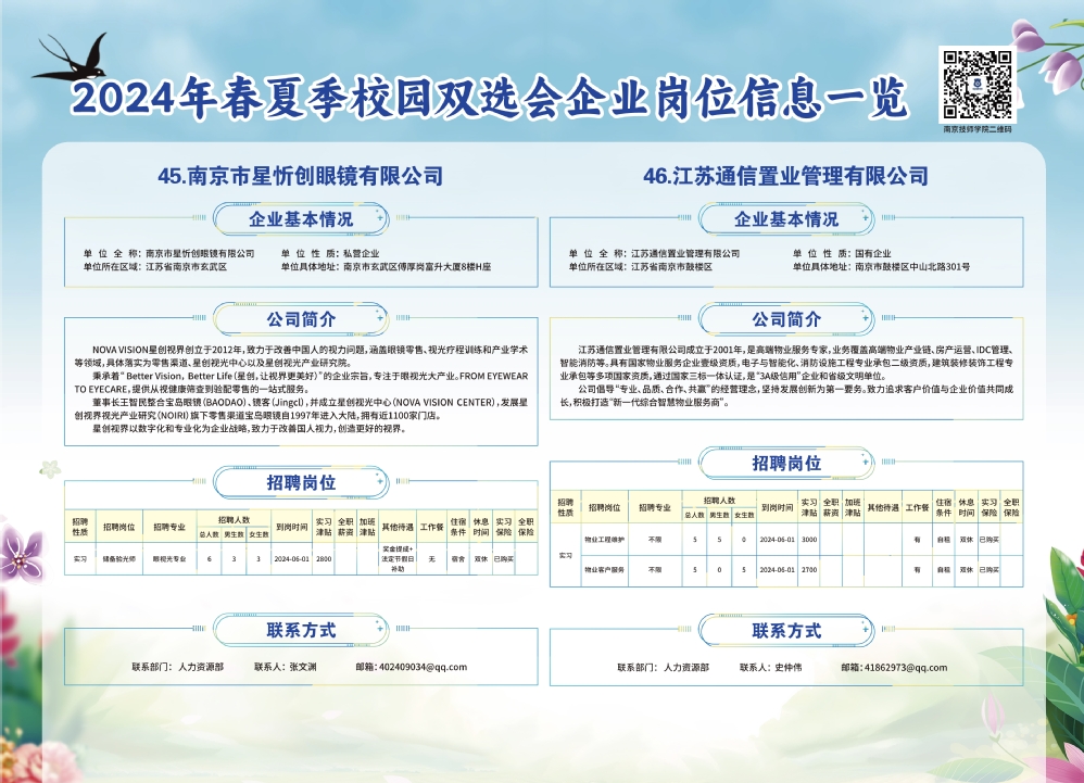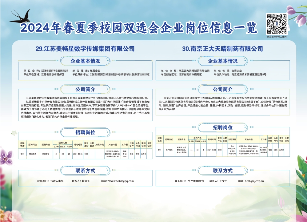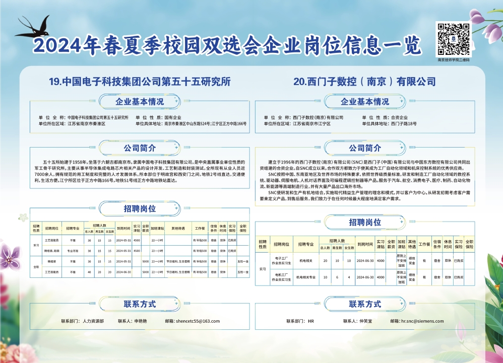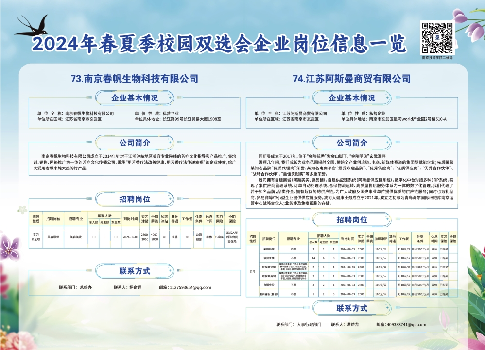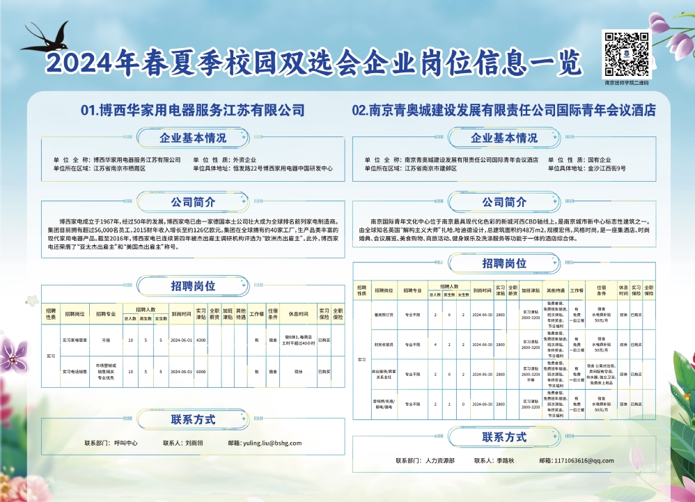 2024年春夏季校园双选会企业实习岗位信息一览