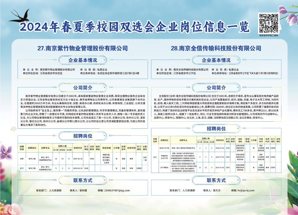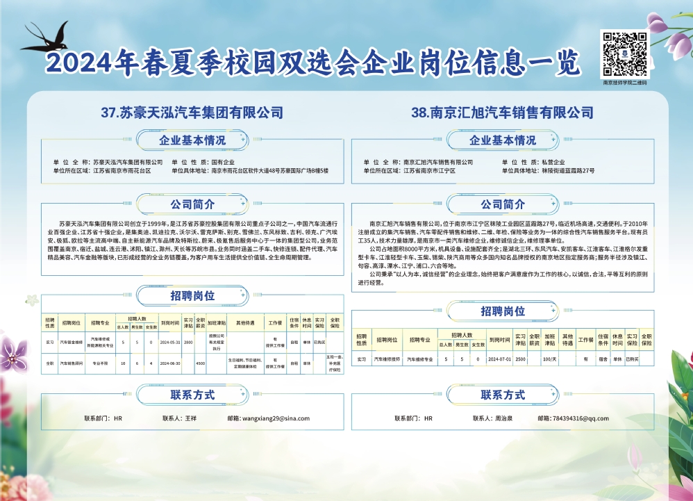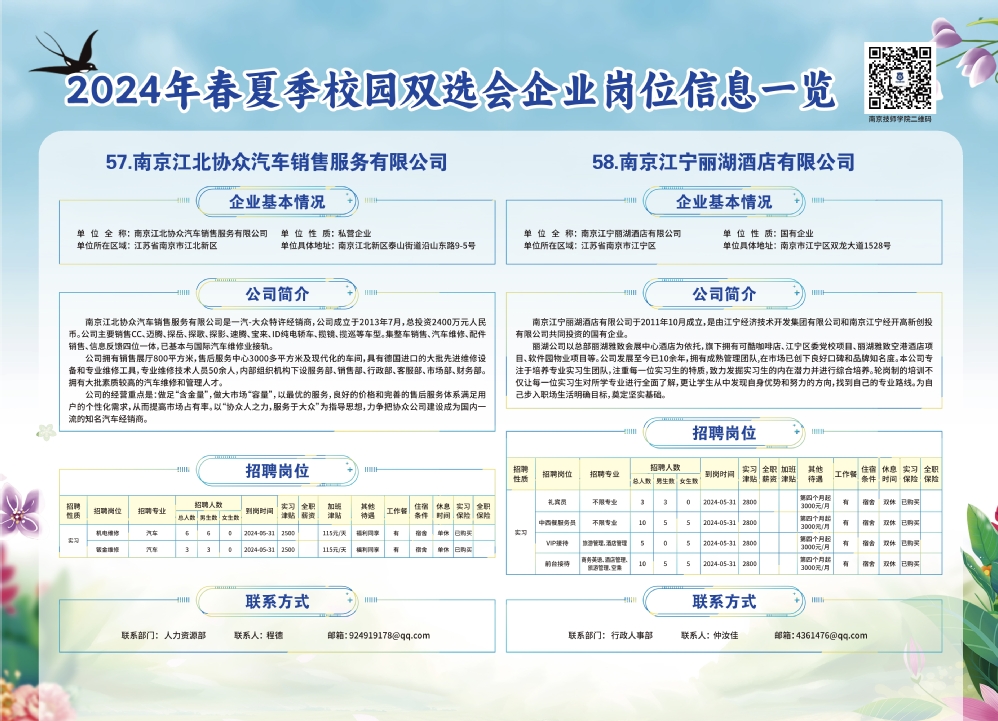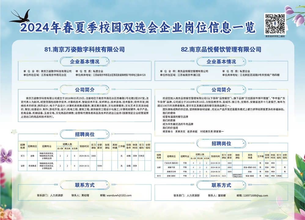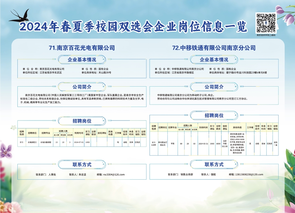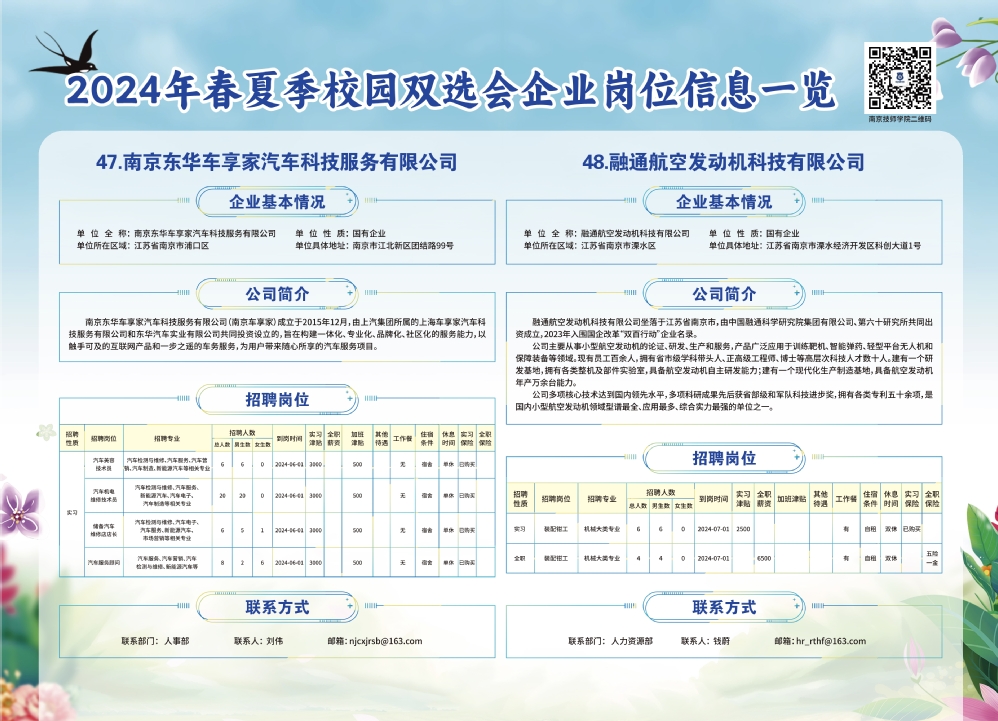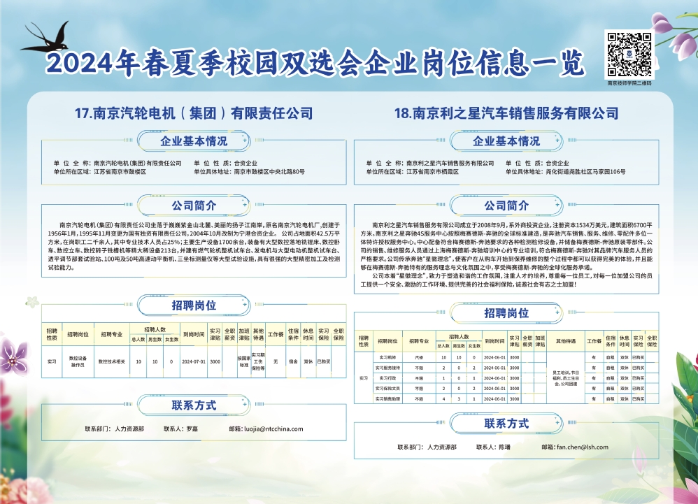 2024年春夏季校园双选会企业实习岗位信息一览