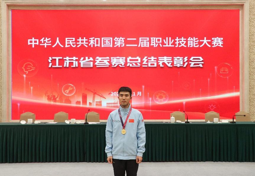 11月7日,中华人民共和国第二届职业技能大赛江苏省参赛总结表彰会在南京西康宾馆隆重举行。我校水处理技术项目金牌选手杨艺杰受邀参加表彰大会并上台领奖。