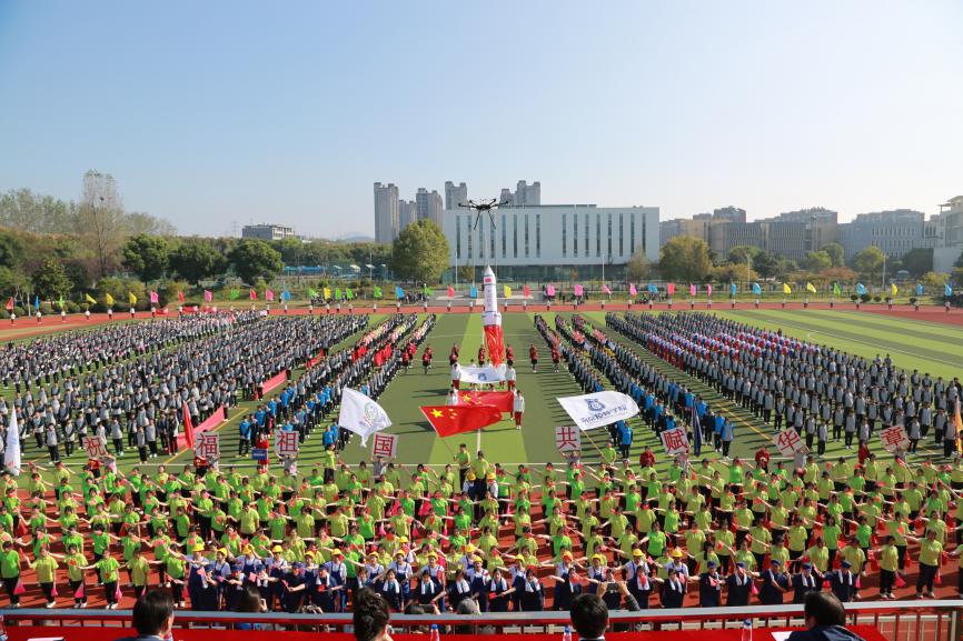 舞动的扇子灵动飘逸,仿佛是时间的笔触,在历史的长卷上勾勒出中国75年来的辉煌历程。身穿工装的同学们,代表着年轻一代的朝气与希望。由无人机升起的充气火箭,更成为开幕式中的一抹亮色,以科技感十足的方式展示了中国航天事业的蓬勃发展。