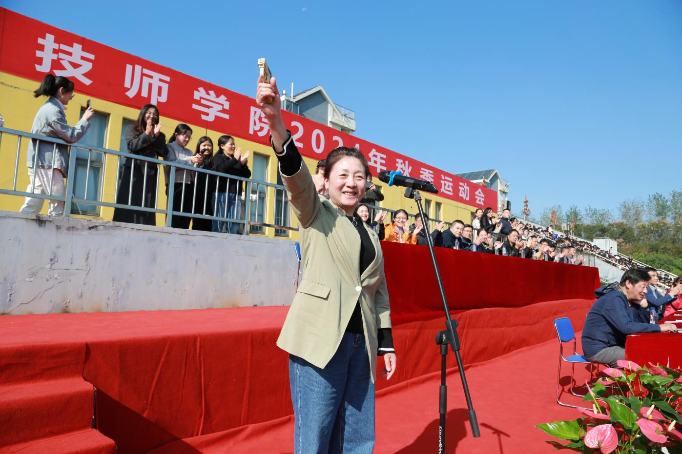 蒋可书记宣布运动会正式开幕,并亲自鸣响了发令枪。随着“砰”的一声枪响,标志着开云手机站登入2024年秋季运动会的各项比赛正式拉开帷幕。