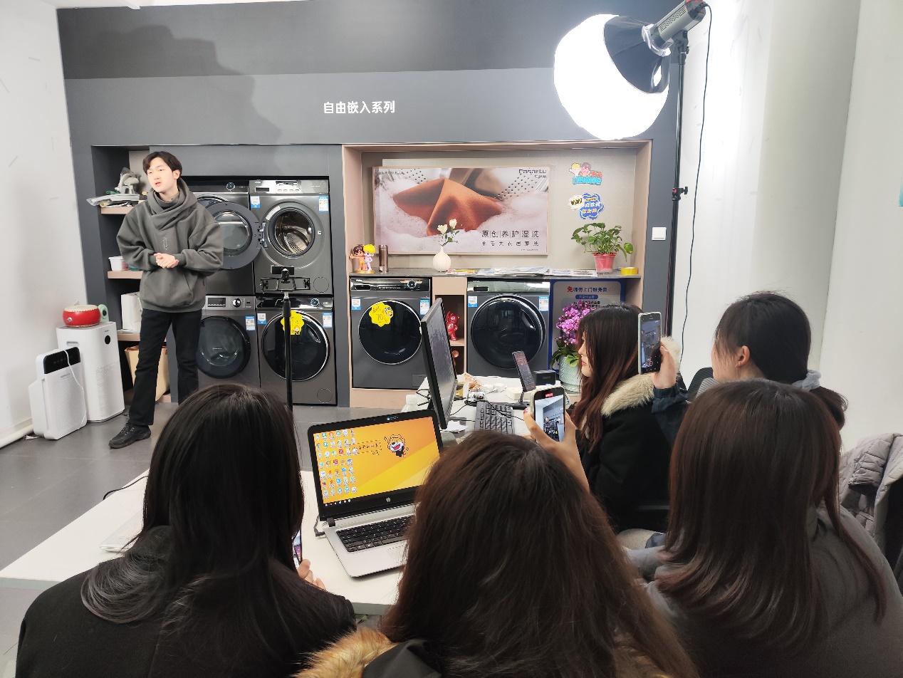 为进一步促进产教融合,提升学生的专业技能与实践能力,营造早规划、早准备、早就业的浓厚氛围,开云手机站登入组织信息技术系21级电商专业的部分学生前往海尔直播基地开展沉浸式就业体验。