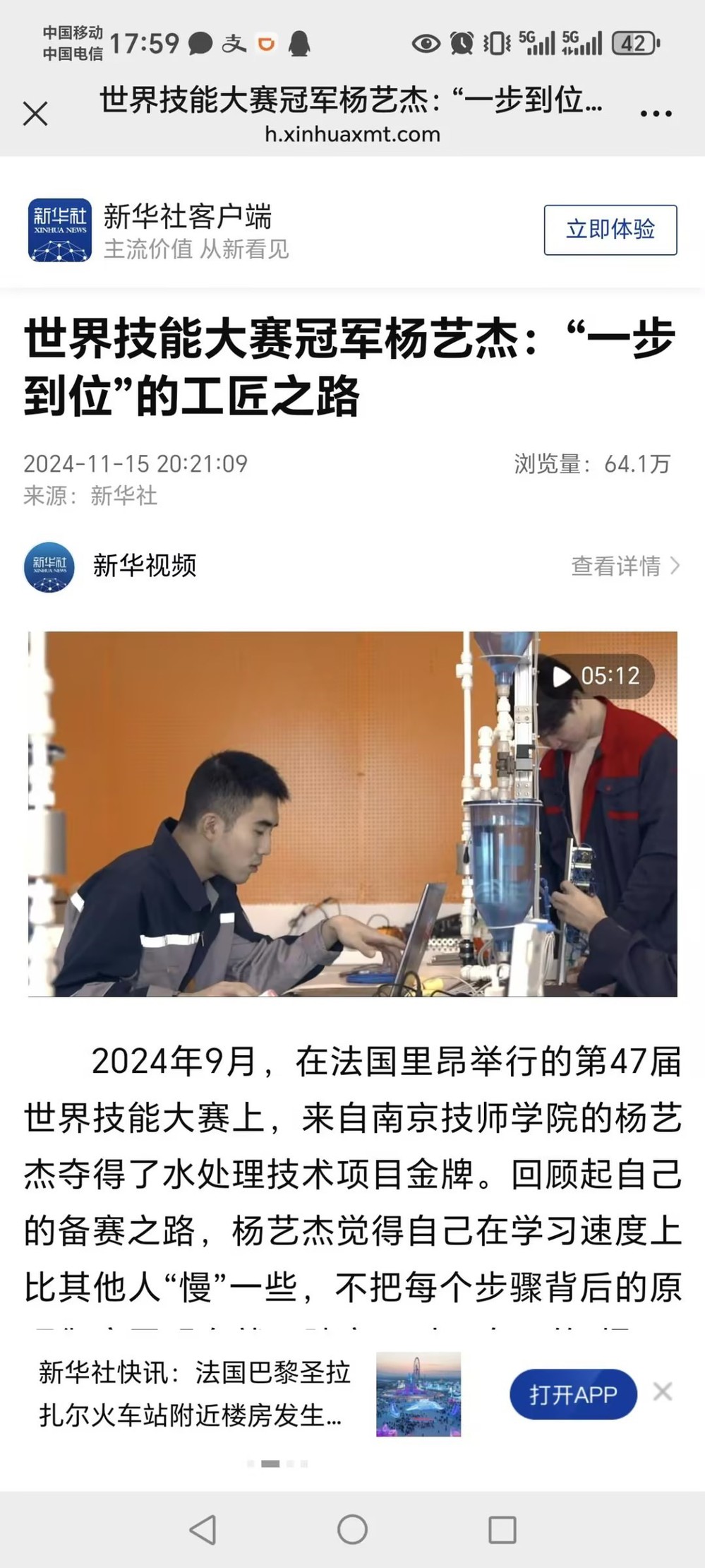 《新华社》—世界技能大赛冠军杨艺杰:“一步到位”的工匠之路