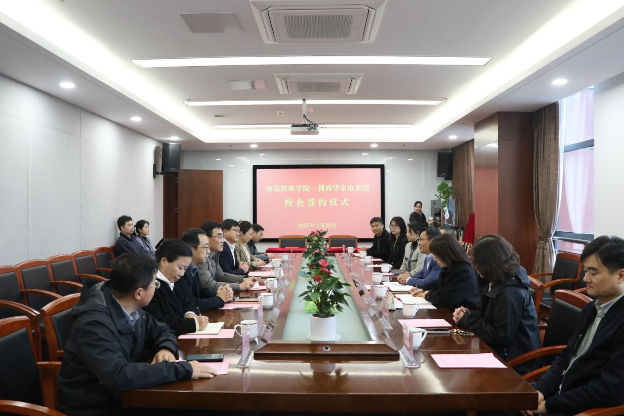 学院院长侯放、副院长赵杰、徐建华及相关部门负责人,博西华电器(江苏)有限公司董事长姚勇、博西家用电器投资(中国)有限公司大中华区人力资源副总裁田晶等8位企业方领导出席了本次签约暨揭牌仪式。会议由副院长赵杰主持。